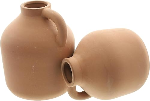 Dekoleidenschaft Lot de 2 vases en terre cuite avec anse - Vase décoratif pour fleurs séchées