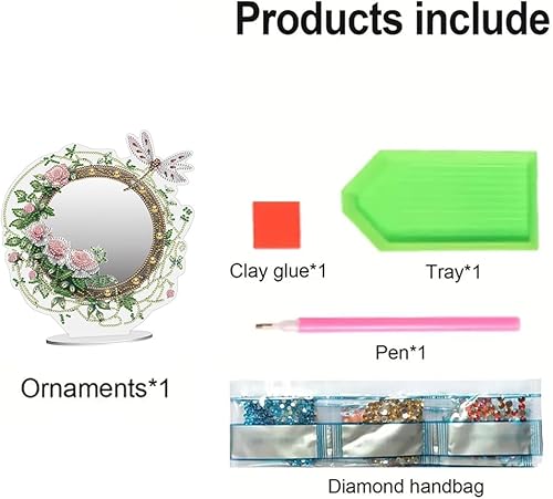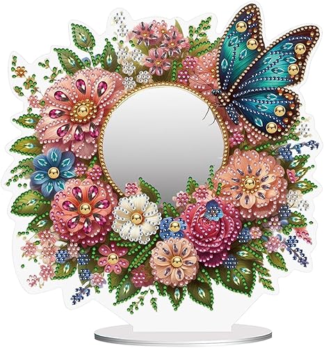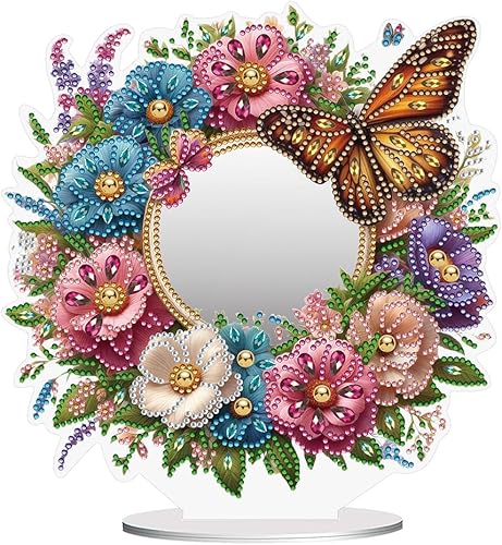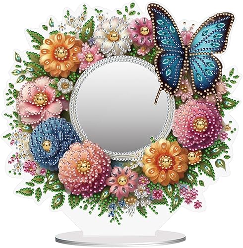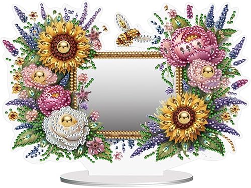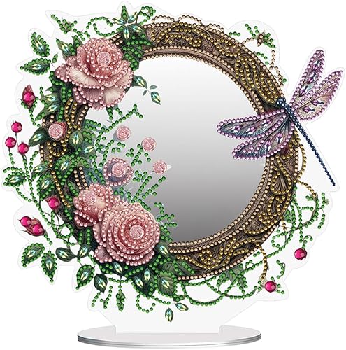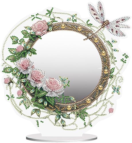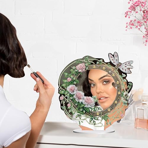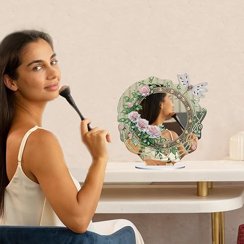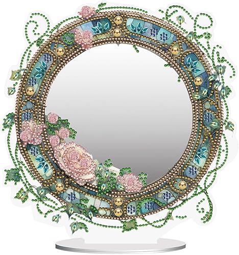Starnearby Miroir de Table Maquillage en Acrylique de Peinture Diamant DIY, Broderie Diamant Miroir, Ornement de Bureau, Diamond Painting Miroir de Bricolage, Cadeau, Décoration