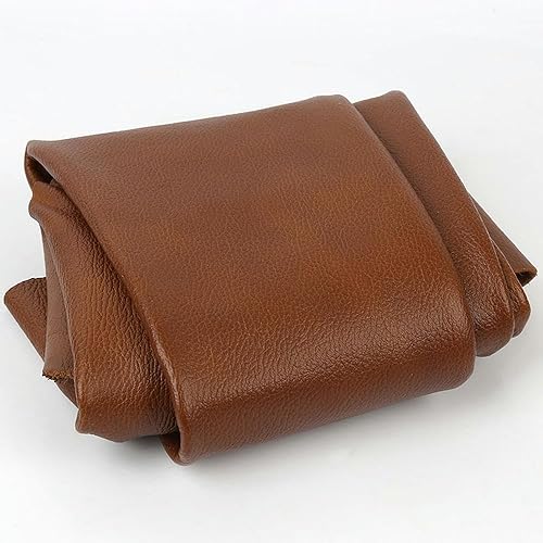 DINGK Peau de Vache Marron première Couche Peau de Vache Cuir véritable Grain de Litchi Fin Cuir Souple canapé Chaise Coussin Tissu en Cuir d'ameublement