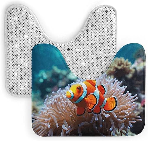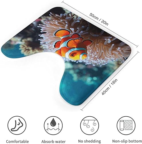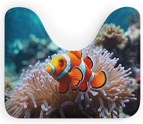 DWTJKMS Tapis de bain en forme de poisson clown - Tapis de salle de bain à séchage rapide absorbant et résistant aux taches - Tapis de toilette antidérapant pour base de toilette ovale