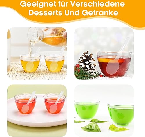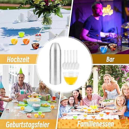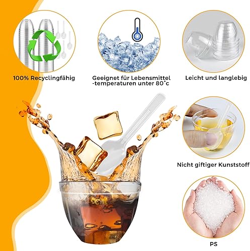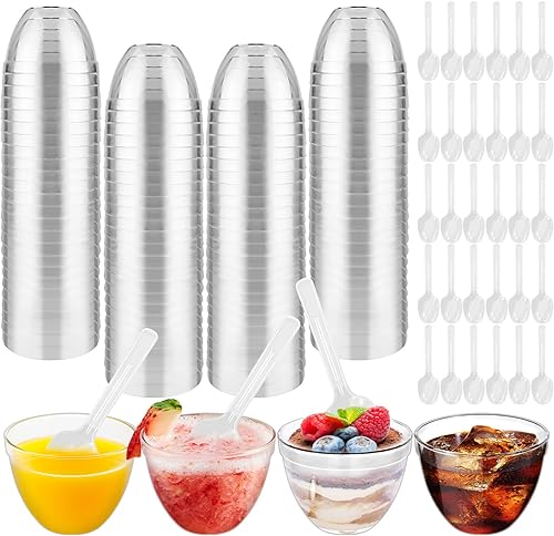 Sheryl&Rain 100 pièces 2oz/60 ml tasses coupes gobelets à dessert avec cuillères plastique,verrines réutilisables transparents Circulaire pour pudding, mousse, crème glacée, anniversaire, mariages
