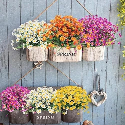 Lot de 6 marguerites artificielles for l'extérieur, fausses fleurs améliorées, verdure réaliste résistante aux UV for jardin intérieur/extérieur, véranda, jardinière, décoration de ferme(Orange)