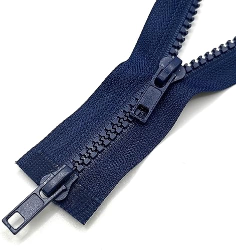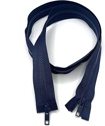 CHAKRAA Fermeture Éclair Double Curseur, 65 cm, 5 mm, Séparable, Bleu Marine, pour Doudoune et Manteau