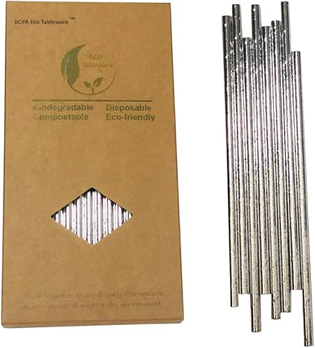Lot de 100 pailles en papier rose irisé biodégradables et recyclables pour cocktail, jus, smoothie (19,7 cm)