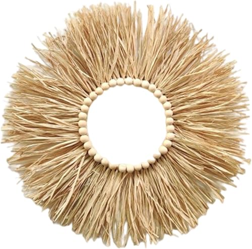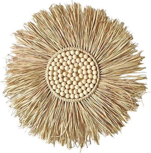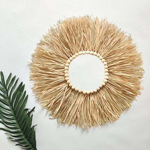 Décoration murale en raphia – 200 g – Pièce murale tissée en fibre naturelle | Sculpture murale en raphia, art mural culturel avec durabilité | Couronne tissée en macramé bohème pour décoration