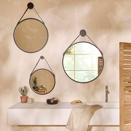 Ariane Déco Miroir Barbier Rond, Encadrement en Métal Noir, 40 cm de Diamètre