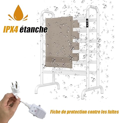 SèChe Serviette éLectrique sur Pied Seche Serviette Electrique Seche Serviette Salle De Bain éLectrique avec Protection Contre La Surchauffe avec 12 Tigesdesign Moderne Taille (60 * 92 * 43cm)