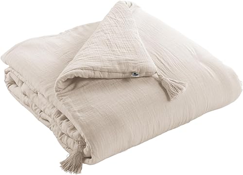 DOCK AVENUE Bout de lit édredon Gaze de Coton 90 x 200 cm Gaia Coloris Pampa