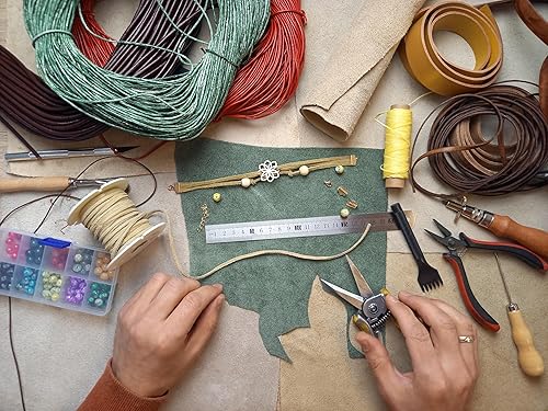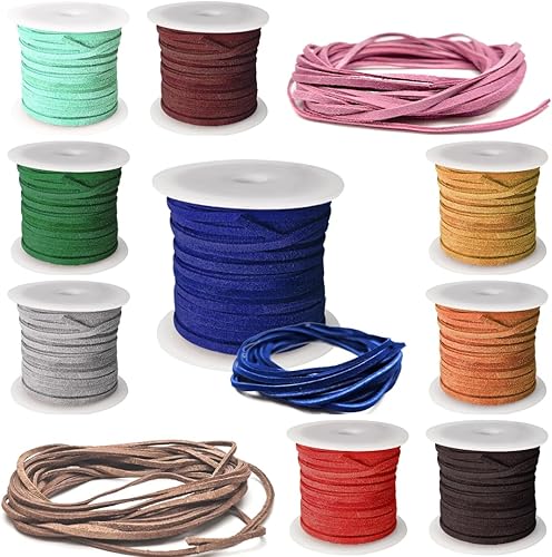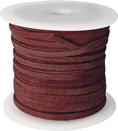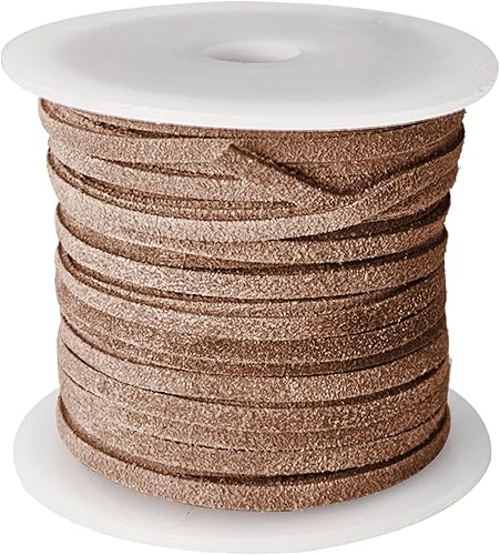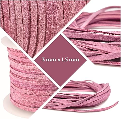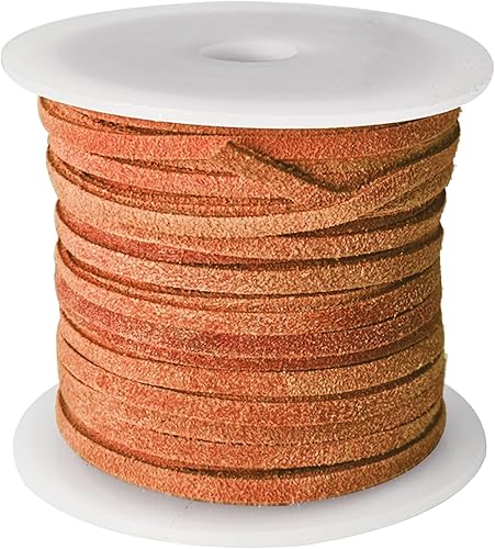 esnado Cordon en daim, cuir plat | Largeur : 3 mm | Épaisseur : 1,5 mm | Longueur : 5 mètres | Couleur : marron naturel | Cuir véritable - tannage végétal | Pour bricolage et fabrication de bijoux