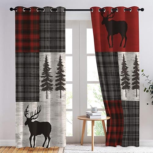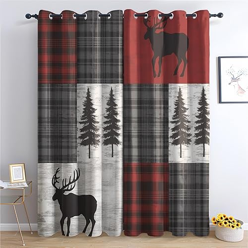 Rideau Occultant Thermiques Cerf Animaux de la Forêt - Lot de 2 Rideaux Imprimé pour Salon Chambre Fenetre Cuisine, Rideaux et Draperies Intérieurs à Oeillets, 140x200 cm (LxH)