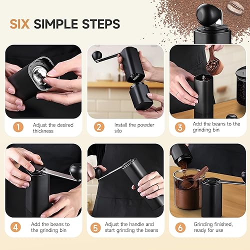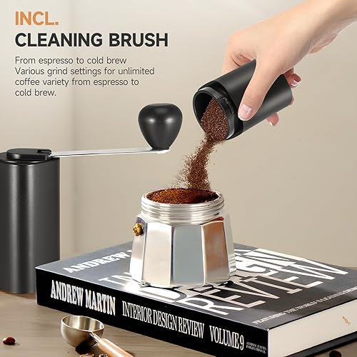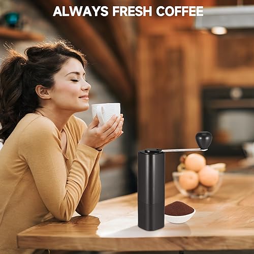 Moulin à café manuel à poignée droite, 12 RRéglages Ajustables, Moulin Manuel Café Portable à Main, Moulin à Café Manuel cafetière à moka,cafetière française, por expresso café Noir