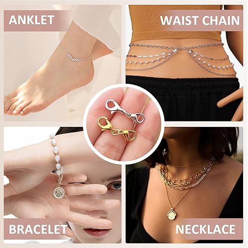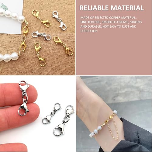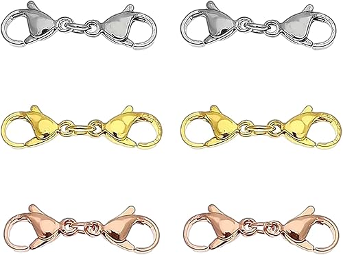 Lot de 6 fermoirs doubles mousquetons en acier inoxydable - Connecteurs à double griffes - Accessoires de bijoux faits à la main - Convient pour colliers et bracelets - Couleur acier, or, or rose,