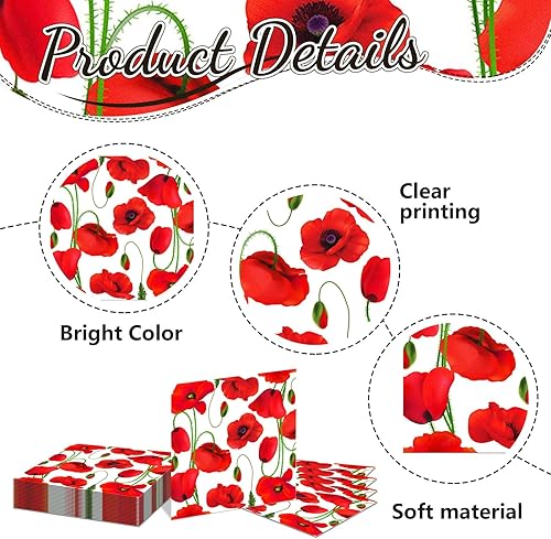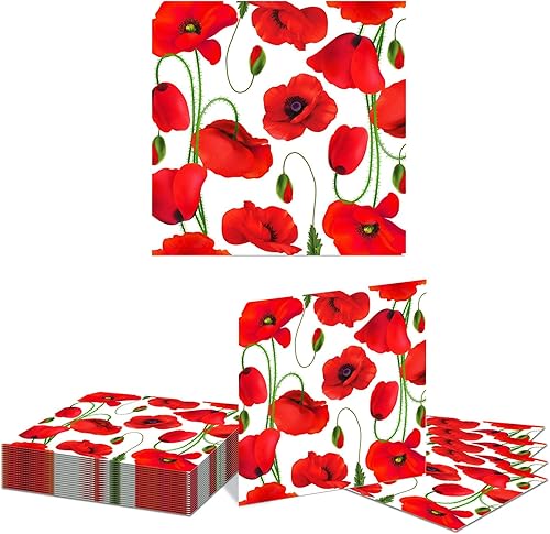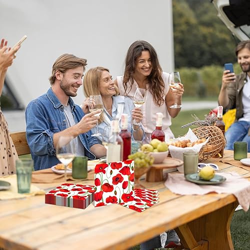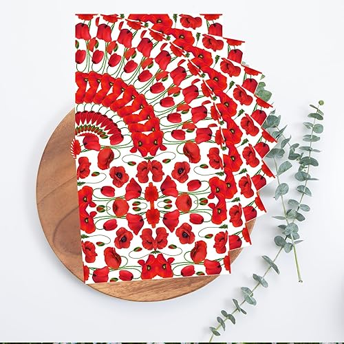 Kotkiddy 20 pièces Serviettes en Papier Motif Coquelicot Rouge, Serviettes jetables décoratives pour Printemps été Automne