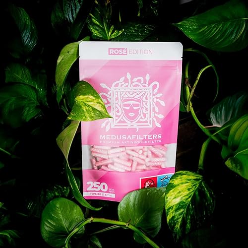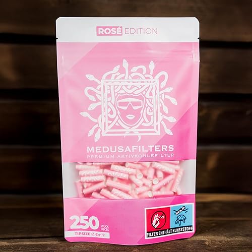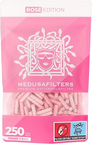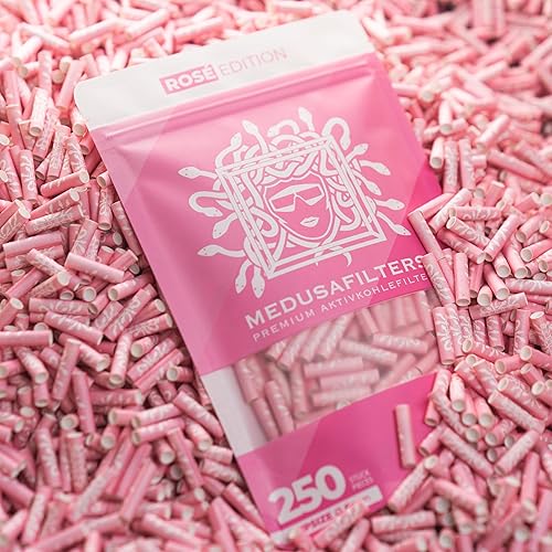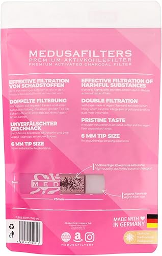 Medusafilters 250 filtres à charbon actif Ø 6 mm | Tip Size | ROSÉ Edition | avec des capuchons en fibres végétaliennes et du charbon actif pour moins de polluants