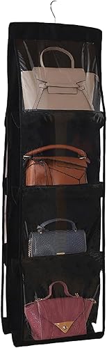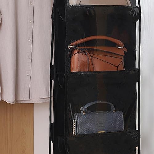 Luojuny Organisateur Suspendu de Sac de Rangement à Six Poches avec Conception Visible Transparente Double Face 6/8 pour Sacs à Main, Sacs à Main, Support de Garde-Robe Anti-poussière Noir B