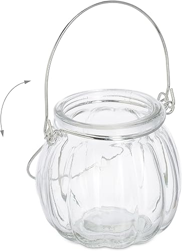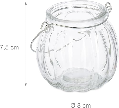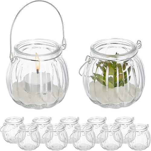 Relaxdays Photophore en Verre, Lot de 12, Porte-Bougie avec Anse argentée, HxD : 7,5 x 8 cm, Rond, Transparent