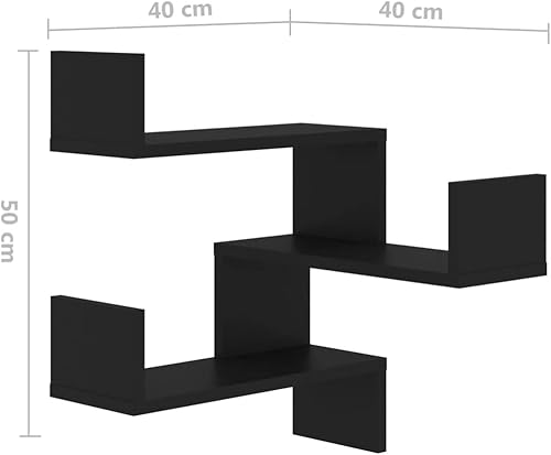 vidaXL Étagère d'angle Murale 2 pcs, Supports Suspendus, Tablettes Flottante, Meubles de Salon Salle de Séjour, Noir Bois d'Ingénierie