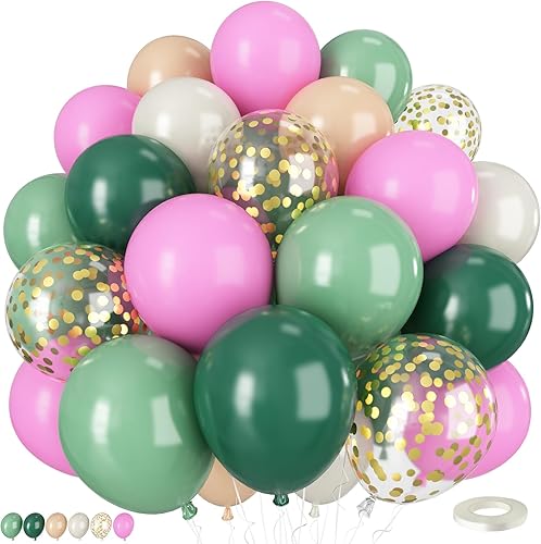 Lot de 50 ballons en latex style bohème rétro pour fête prénatale, fête prénatale, safari, décoration de fête d'anniversaire, 30,5 cm, vert sauge, rose, sable et rose