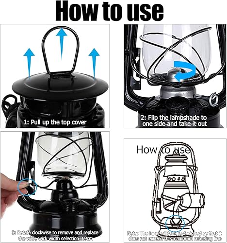 Lampe à pétrole, lampe à huile, lampe à huile, 19 cm, avec mèche à huile, vintage, portable, en fer étamé, lampe à huile, décoration d'intérieur, éclairage intérieur et extérieur