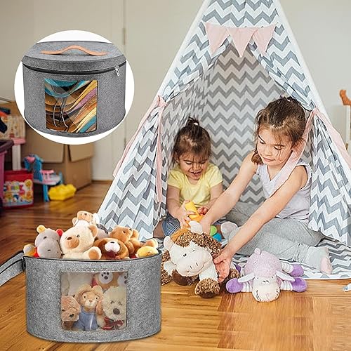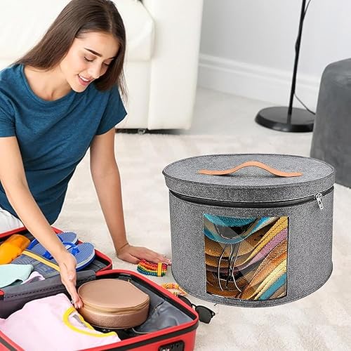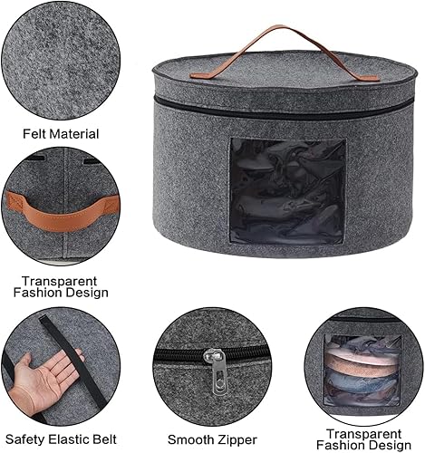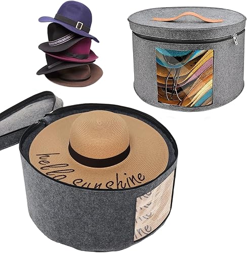 Rangement Pour Chapeaux Avec Couvercle, Grand Organisateur De Chapeaux Pliable, Boîte De Chapeaux Pliable En Feutre, Boîte à Chapeaux Ronde En Feutre, 42 x 26 cm Fenêtre Transparente (Gris moyen)