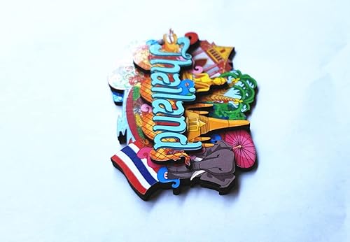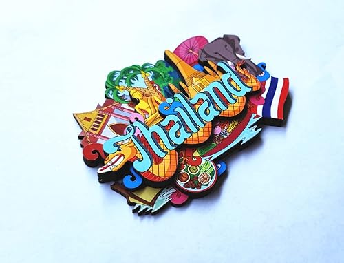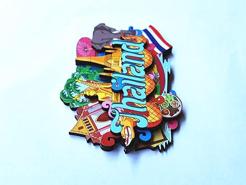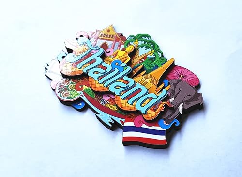MUYU Aimant 3D Thaïlande - Cadeau touristique - Style traditionnel artisanat bois Thaïlande - 1 unité - 9,5 x 7 cm - Bois