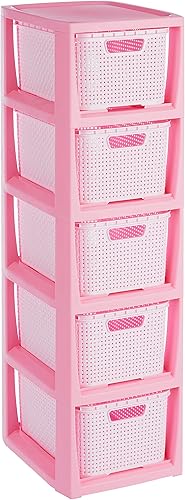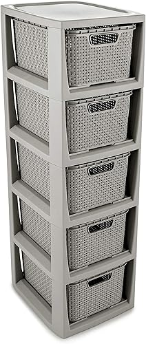 BranQ - Home essential Rattan im Trend Étagère en Plastique PP sans BPA Gris Clair 29,5 x 24 x 80 cm 5 paniers