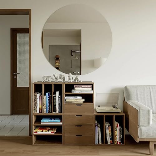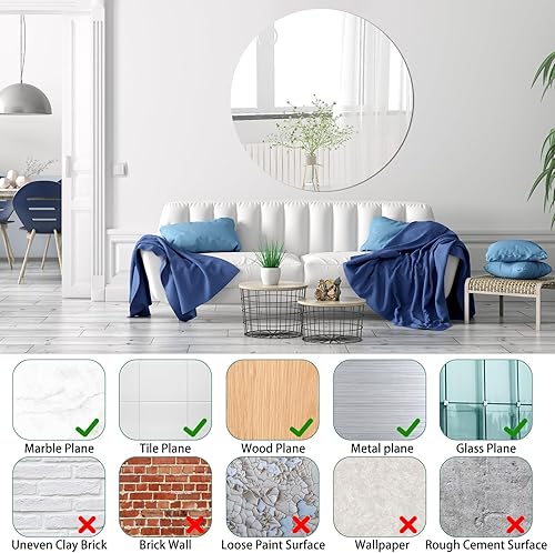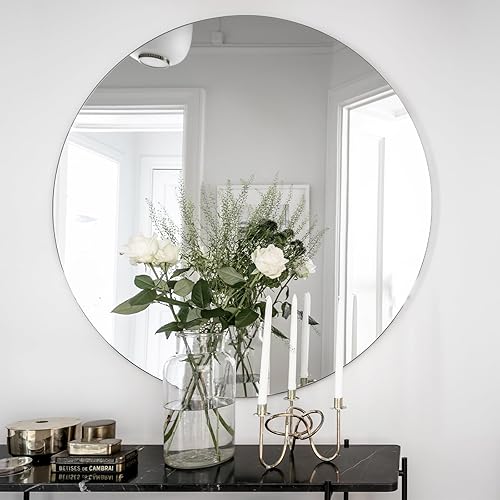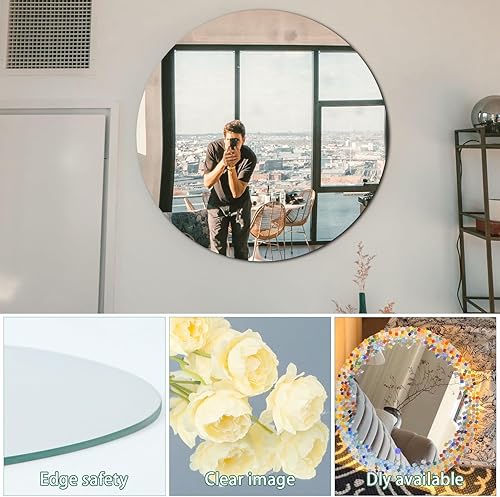 DRERIO Miroir 50x50cm Rond Mural Adhésif Verre Grand Decoratif pour Tes Bain, Douche, Toilettes