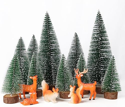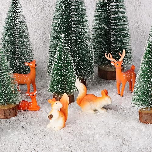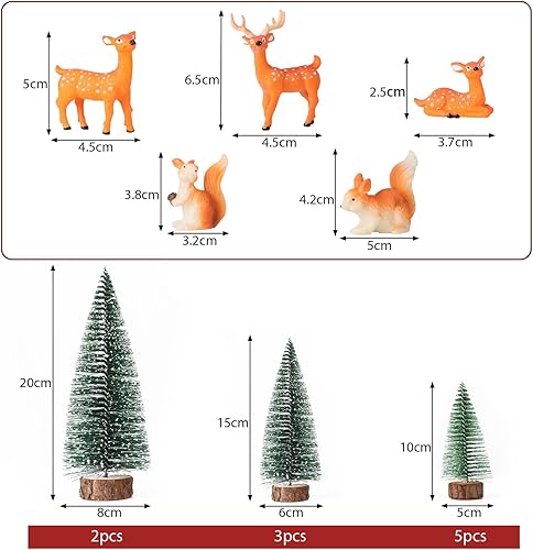 15PCS Miniature Noël Village Wapiti Ecureuil Sapin de Noël Ornement de Noël Figurines Mini Paysage Décoration Table Noël