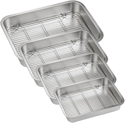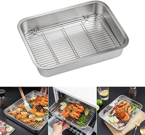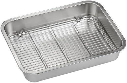 ZAMETTER Plaque de cuisson profonde en acier inoxydable sans four avec grille, grande plaque à biscuits (31 x 24 x 5 cm)