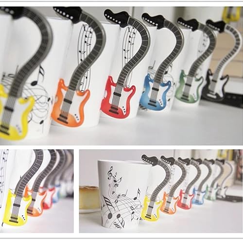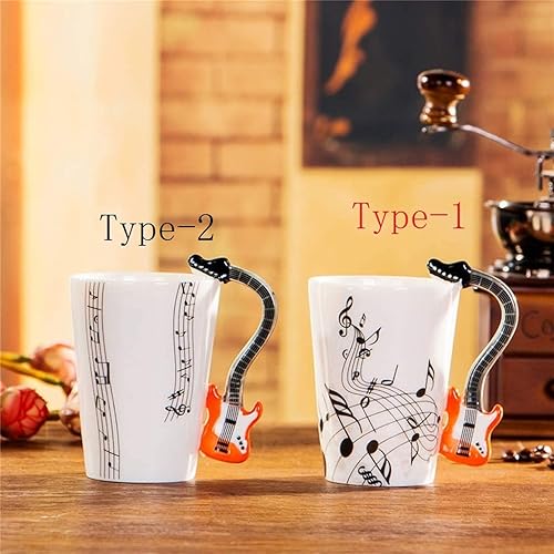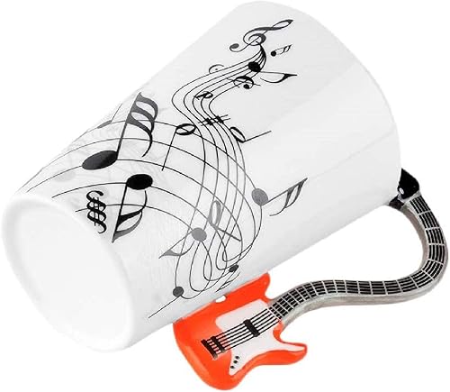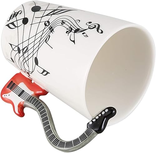 eKsdf Tasse en céramique avec motif de musique - Tasse à café - Tasse à thé - En porcelaine - Avec poignée de guitare électrique rouge - Jusqu'à 280 ml (Type-1)