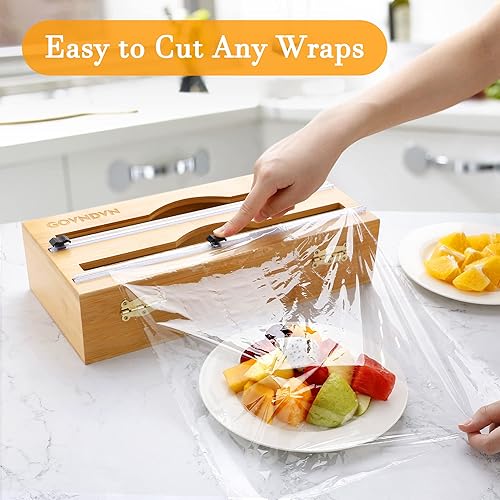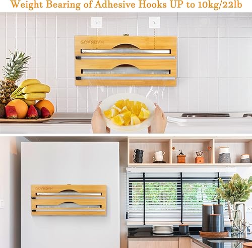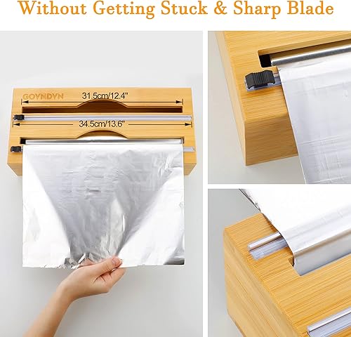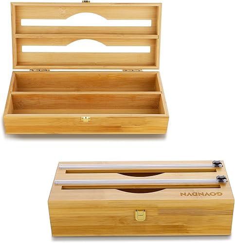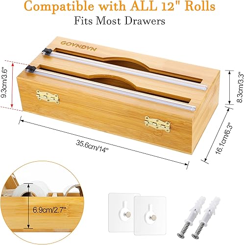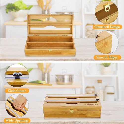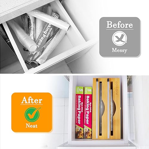 2 en 1 Bambou Distributeur-Papier-Aluminium Distributeur-Film-Alimentaire D'Organisateur-Papier Parchemin en Aluminium-Rangement Coupe-Film-Alimentaire pour Tiroir de Cuisine