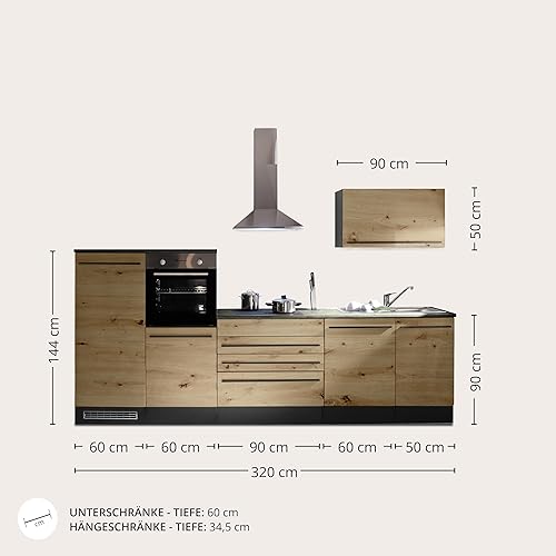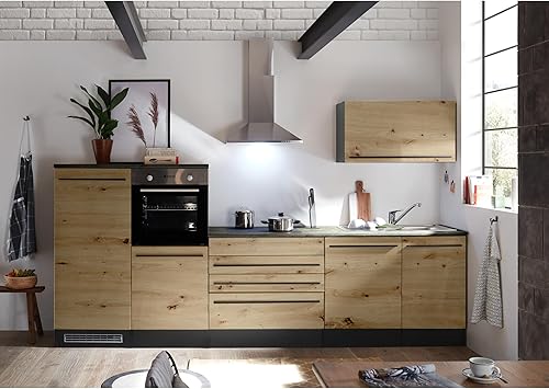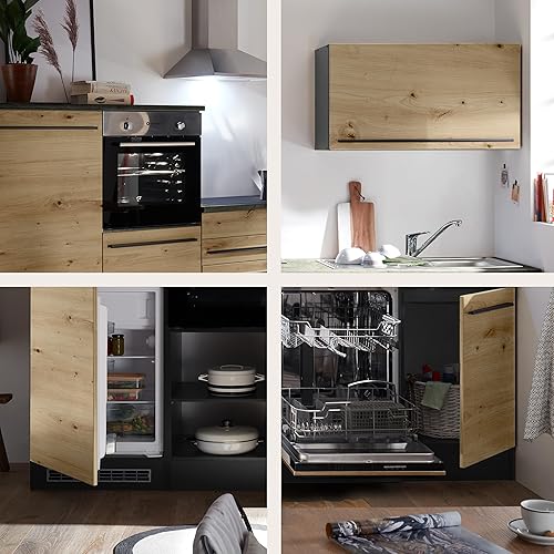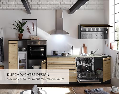 Stella Trading Jazz 4 Cuisine Moderne sans électroménager, Anthracite, Aspect chêne Artisan - Cuisine intégrée spacieuse avec Beaucoup de Rangement - 320 x 200 x 60 cm (L/H/P)