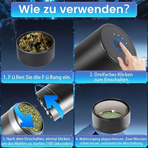 Grinder électrique SOARFLY electric herb grinder USB C rechargeable grinder electrique mini grinder avec brosse de nettoyage, charge complète avant utilisation