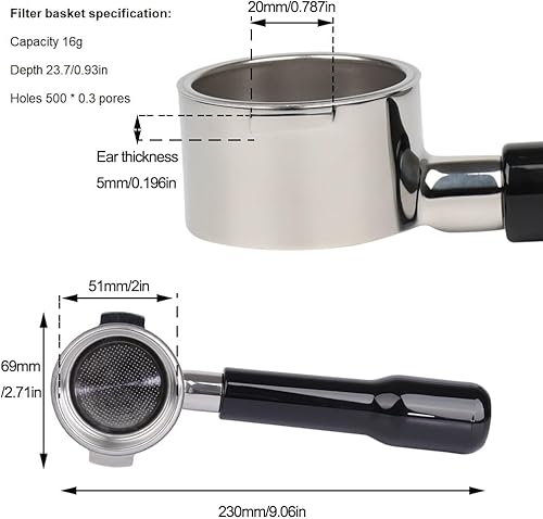Porte-filtre sans fond 51 mm 2 oreilles pour Delonghi ECP31.21 ECP33.21 ECP35.31 ECOV311, avec panier filtrant de rechange en acier inoxydable