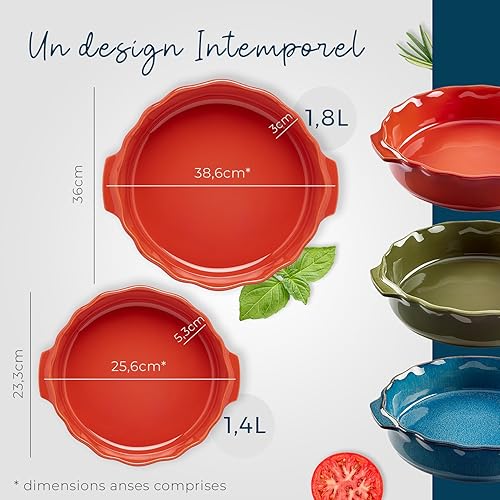 ESPRIT DE CUISINE - Plat À Four Rond En Céramique - Poignées ergonomiques - Émail Résistant Aux Rayures - Facile À Nettoyer - Made In France - 1,8L - 38,6x36x3cm Extérieur - Brique