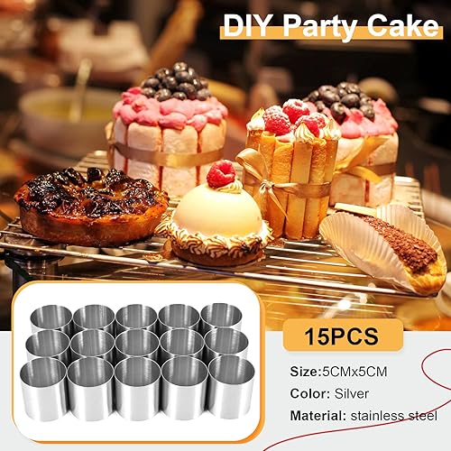 Tiamu 15 Pcs Cercle a Patisserie 5cm Moule Tartelette, Anneaux Cercle à Ronds en Acier, Moule à Gâteau Mousse, DIY Cercle de Desserts, Emporte Piece Ronds pour Sushi, Pâtisserie, Fondant
