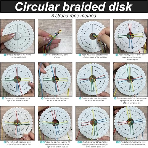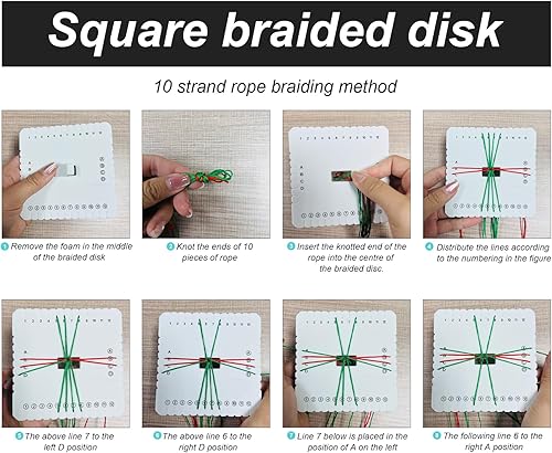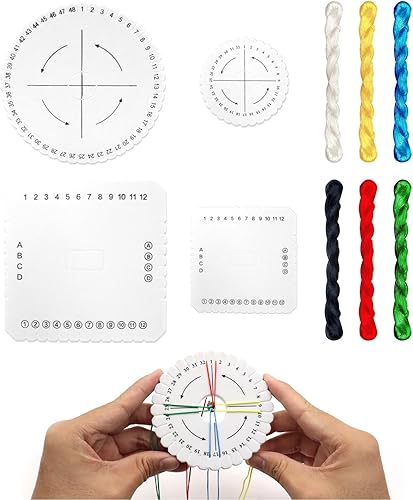 Kit de Démarrage Kumihimo - Lot de 10 Disques Ronds et Carrés Avec Cordon pour Tissage de Perles (A)