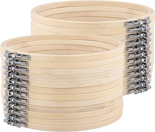KEILEOHO Lot de 24 cercles à broder de 20 cm, en bois de bambou, pour point de croix, cadre rond pour bricolage