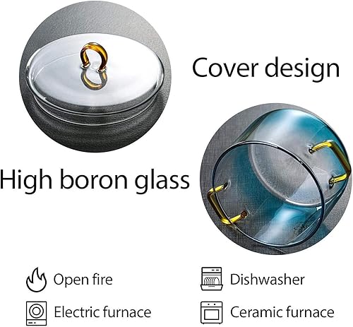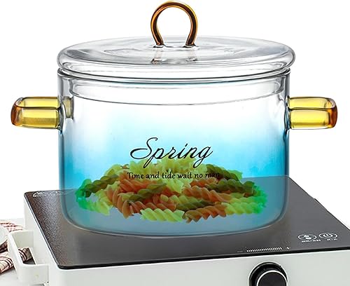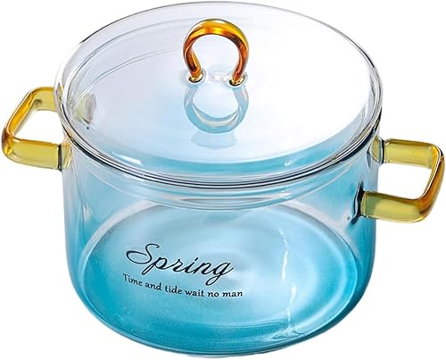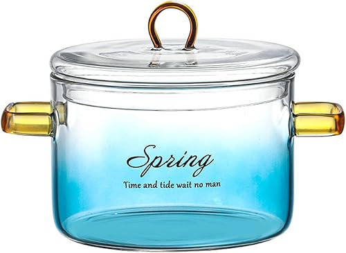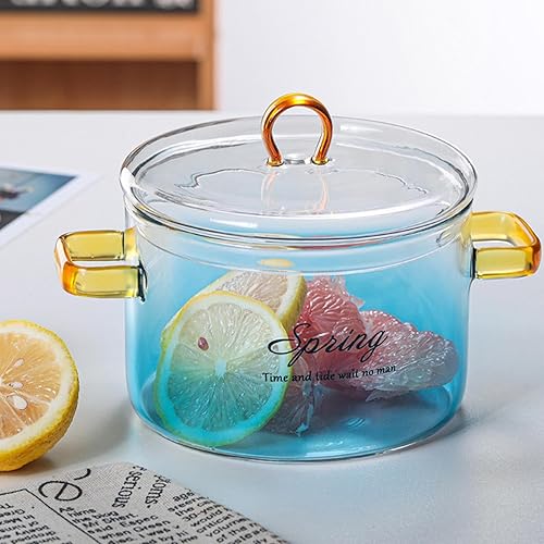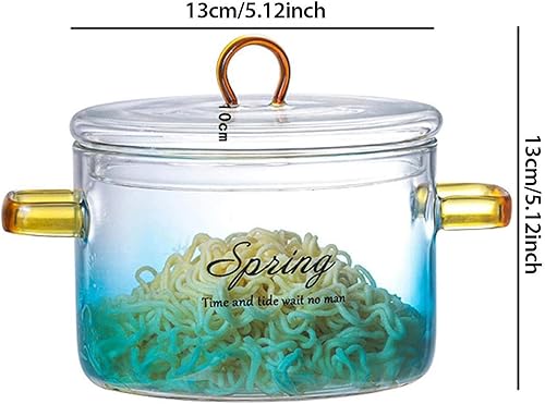 Casserole en verre transparent dégradé de 900 ml, casserole en verre avec couvercle et poignées | Bol à salade de fruits en verre dégradé avec couvercle, pot pour nouilles, soupe, lait, thé