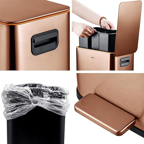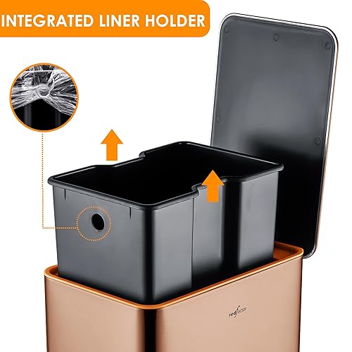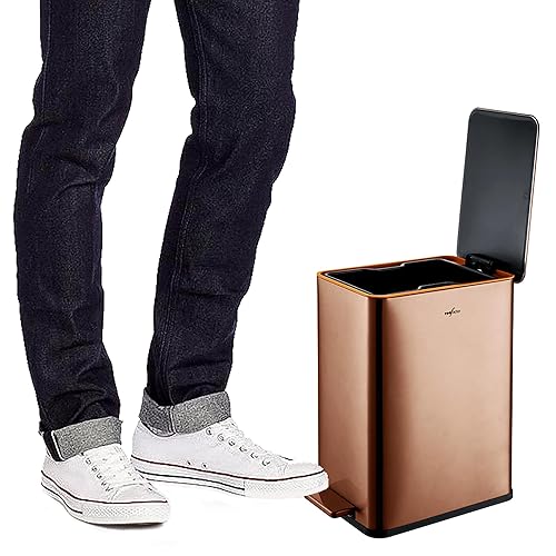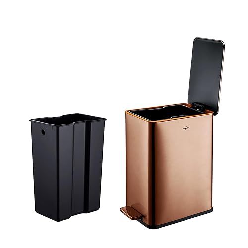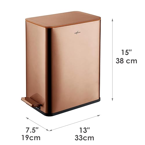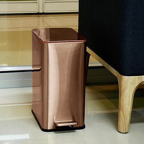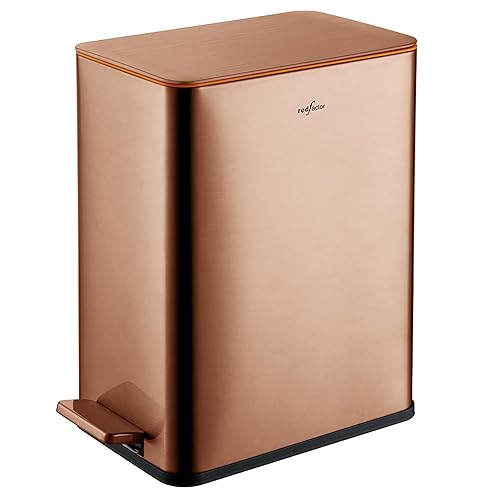 RedFactor Poubelle à Pédale Fine 10L en Acier Inoxydable – Couvercle à Fermeture Douce et Seau Intérieur Amovible pour Salle de Bain, Cuisine, Bureau ou Chambre (Cuivre)