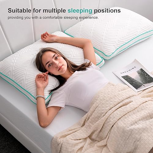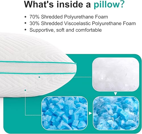Twirest Lot de 2 oreillers en mousse à mémoire de forme déchiquetée, oreillers hypoallergéniques pour un sommeil confortable, lavables en machine, taille standard (48 x 74 cm)