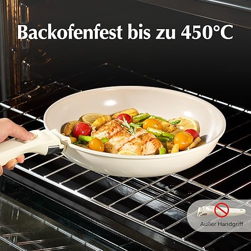 Redchef Lot de poêles et poêles en céramique avec poignée amovible et anti-adhésives 20/24/28 cm pour le camping, sans PTFE, sans PFOA, peu encombrantes, passent au lave-vaisselle (beige)