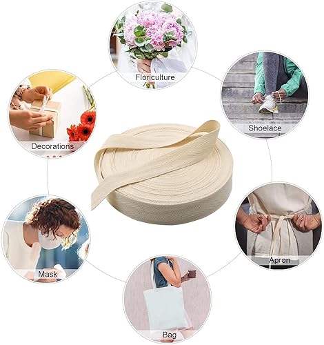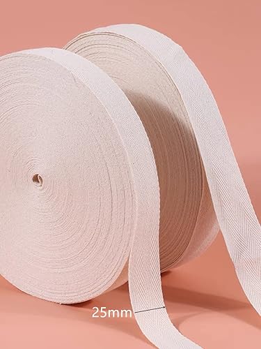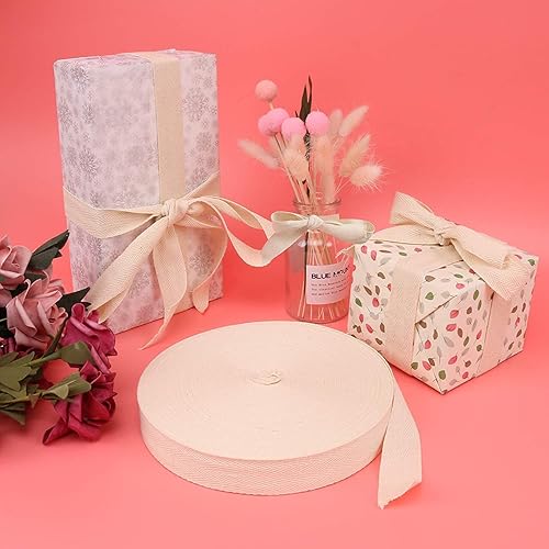 Nothers Ruban en Coton 50m x 2,5 cm,Ruban en Sergé de Coton,Bandes de Biais en Coton pour la Couture D'emballages de Cadeaux D'artisanat de Bricolage