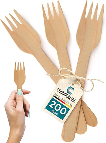 Lot de 200 fourchettes en bois jetables,Fourchettes en bois jetables,Couverts jetables,Couverts en bois jetables,Fourchettes jetables,Fourchettes jetables en bois (200, fourchettes)