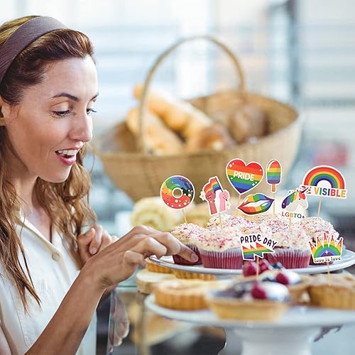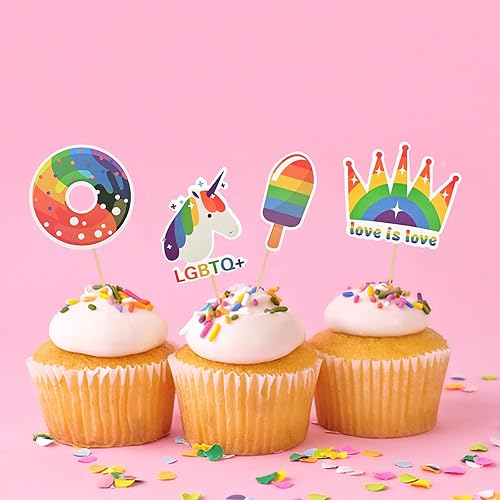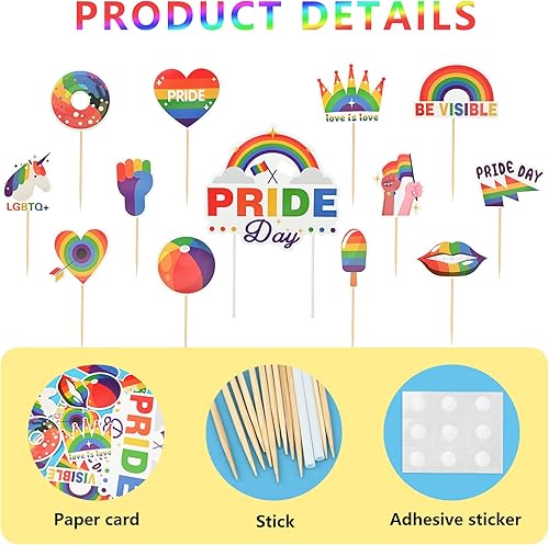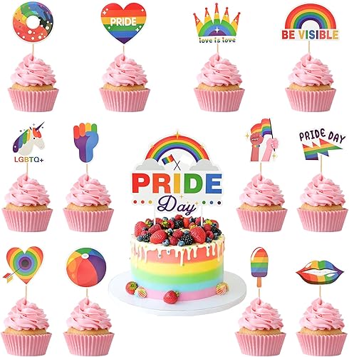 Bekecidi 1 grande décoration de gâteau et 12 décorations de gâteau arc-en-ciel LGBT Pride pour diverses fêtes à thème, fournitures de décoration de gâteau d'anniversaire