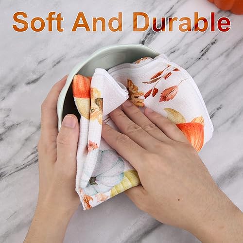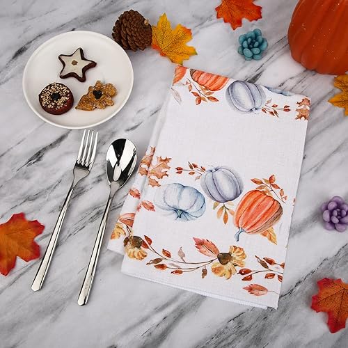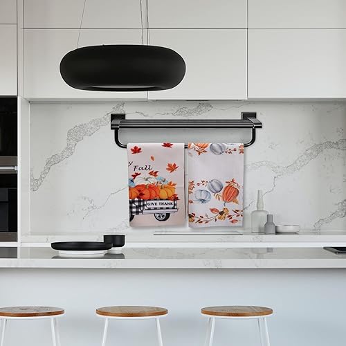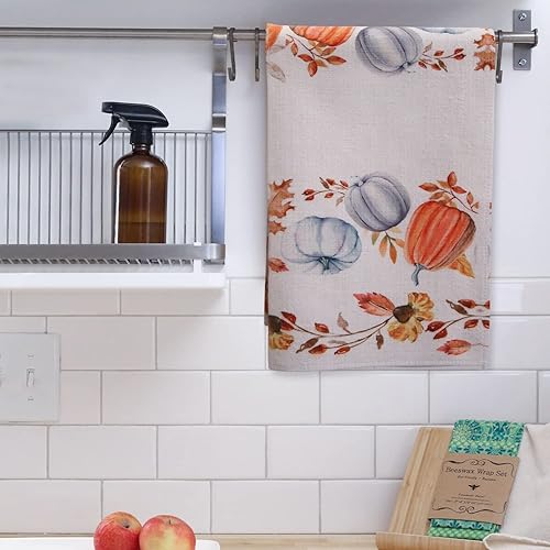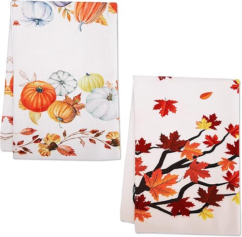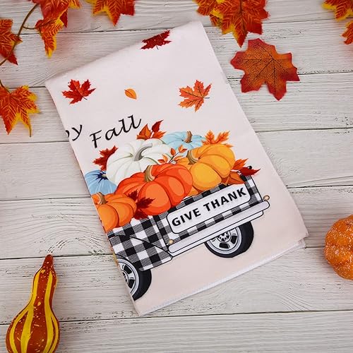 Savita Plaid Car Feuille d'Érable Citrouille Torchons de Cuisine Automne, 58 cm x 39 cm Automne Thanksgiving Récolte Essuie-Mains Vintage Bar Tea Torchon d'automne Lot de 2