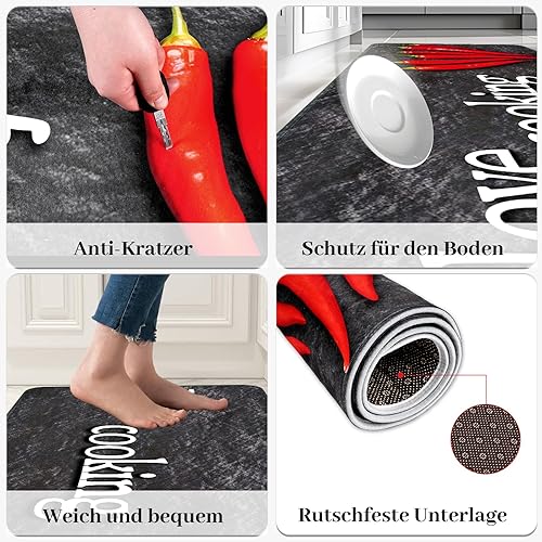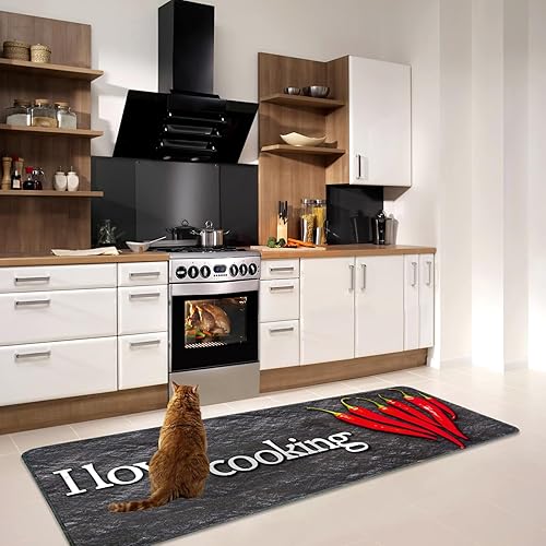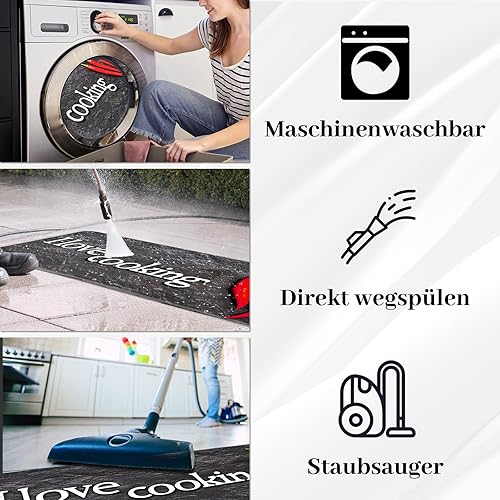 Alishomtll ANRO Tapis de couloir, antidérapant, 60 x 180 cm, antidérapant, lavable, anti-taches, absorbant, facile d'entretien, pour la cuisine et l'intérieur du salon, noir
