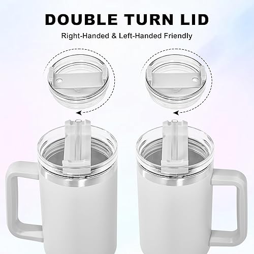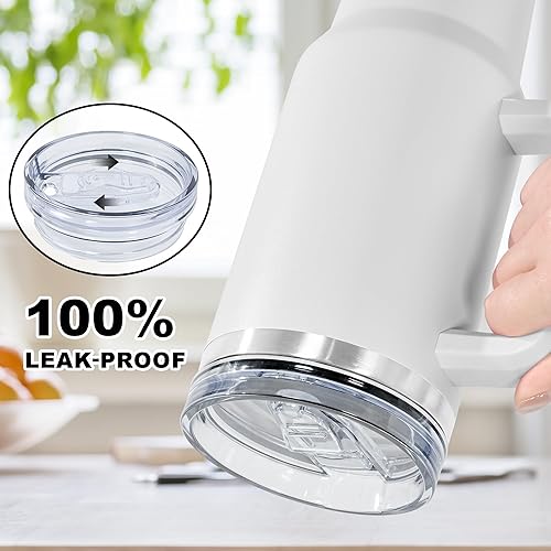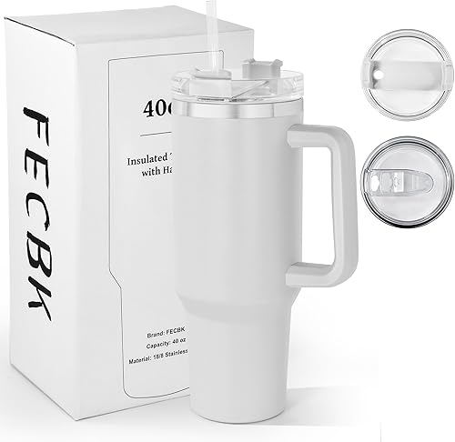 FECBK Mug Isotherme avec Paille et Poignée 1.2L, Tasse Isotherme 100% Anti-fuite, 34 Heures Froid, 12 Heures Chaud, Gobelet en Acier Inoxydable, Lavable au Lave-Vaisselle, Gris