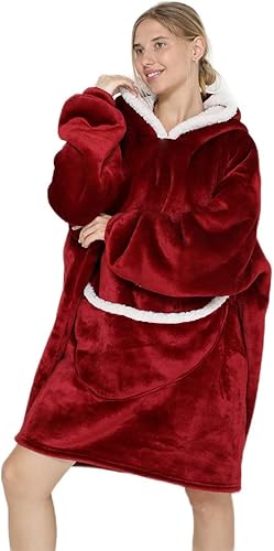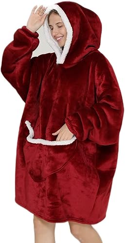 NLAND Sweat à Capuche Surdimensionné Femme Homme Pull Plaid Polaire Hiver Chaud Couverture à Capuche avec Poche Douce et Confortable Oversize Hoodie Manche Longue Sweatshirt