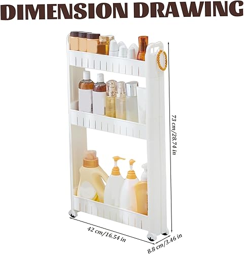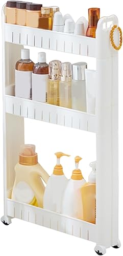 Meooyo Chariot de Rangement Mince, 3 Niveaux Entre laveuse et sécheuse Storage Organisateur de Chariot Salle Bain en Plastique avec Roues Rack d'étagère étroite pour Cuisine, Salle Bain, étude, bur